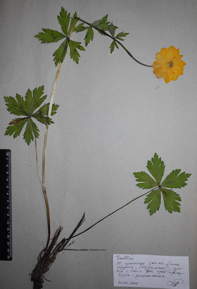 Общий вид цветущего растения (листья мокрые от дождя). Иркутская обл. Качугский р-н, верховье р. Лена напротив пос. Чанчур, правобережная терраса, смешанно-еловый лес травяно-зеленомошный. 18.06.2014.
