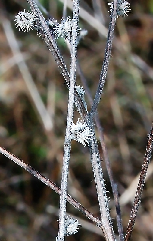 Мои растения 30-50 см высотой, ветвятся, пожалуй, ниже середины, и, если травостой выеден скотом, образуют этакий шар, осенью. В травостое они стройнее и выше.
