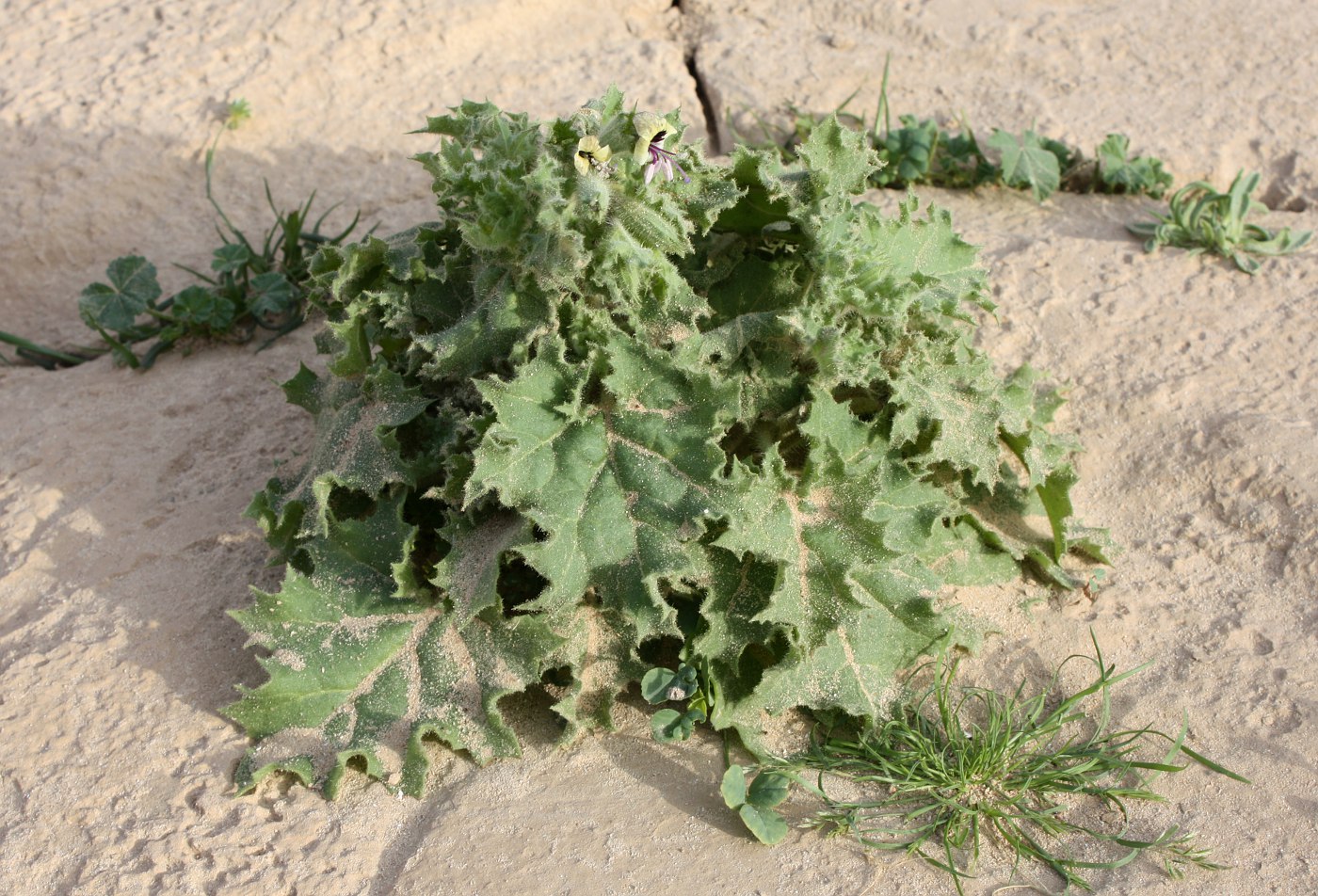 Цветущее растение. Израиль, впадина Мёртвого моря, окр. Эйн-Геди, на аллювиальных отложениях вади Аругот. 19.03.2014.