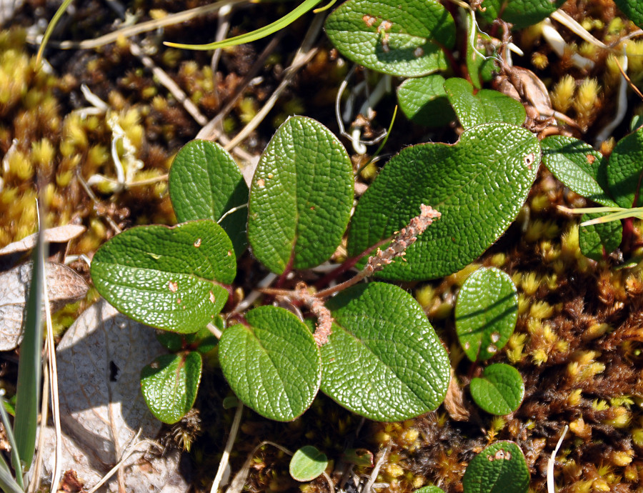 Верхушка побега с отцветшим мужским соцветием. Бурятия, Окинский р-н, перевал Черби, ≈ 2400 м н.у.м., горная тундра. 10.07.2015.