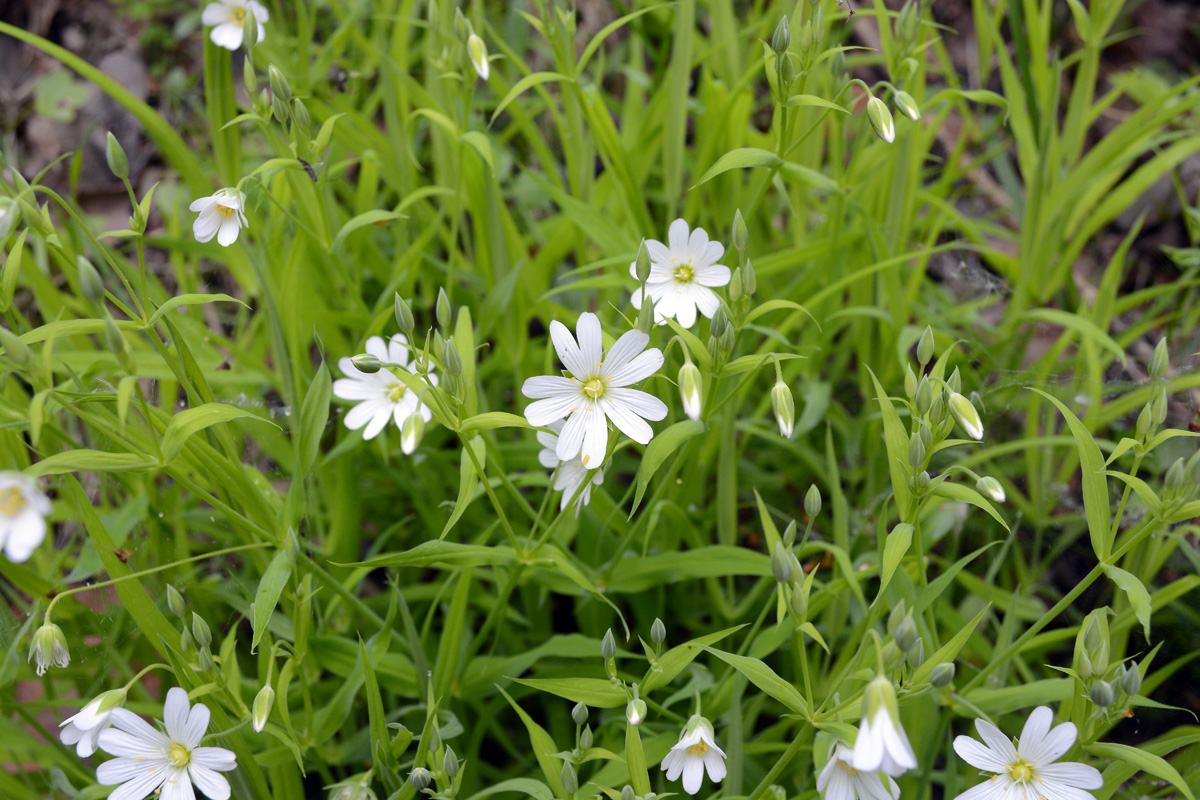 Верхушки цветущих растений. Московская обл., пос. Ангелово, лес у дороги. 17.05.2016.