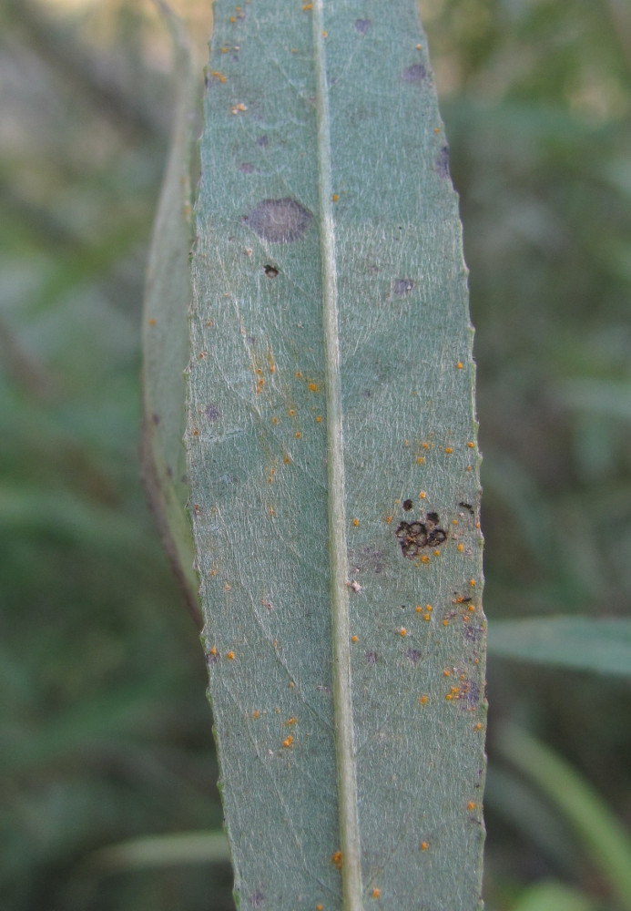 Лист с питающимися на нём жуками-листоедами. Краснодарский край, Абинский р-н, станица Холмская, берег р. Хабль. 14.09.2016.