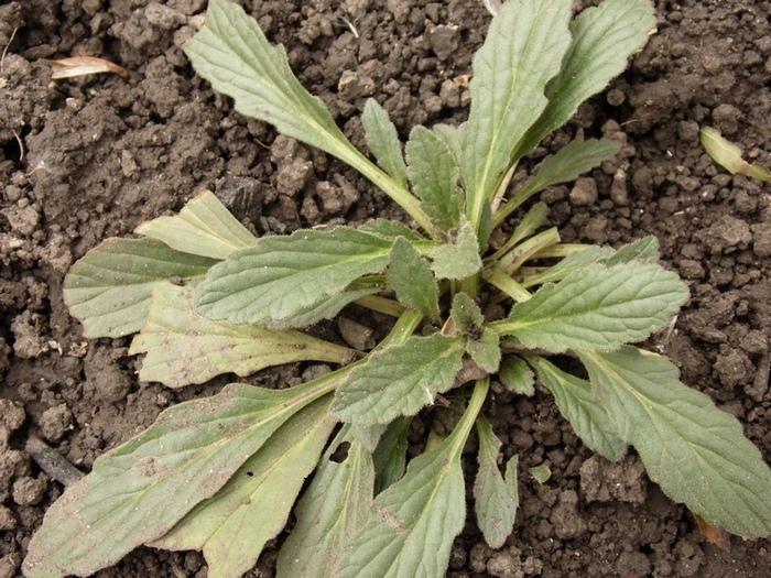 Вегетирующее растение (диаметр розетки листьев — 12 см). Ростов-на-Дону, садовый участок, сорное. 09.10.2016.