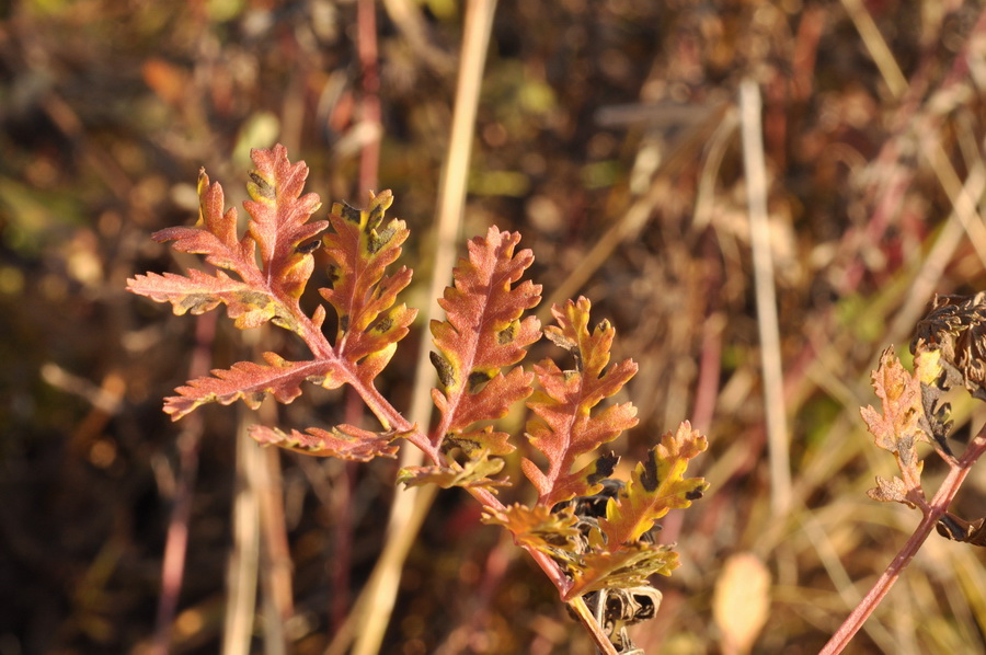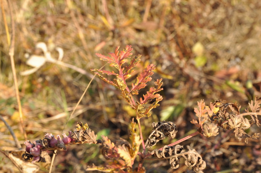Верхушка побега увядающего растения с галлами. Приморский край, Уссурийский гор. округ, окр. с. Монакино, сухой разнотравный луг. 15.10.2016.