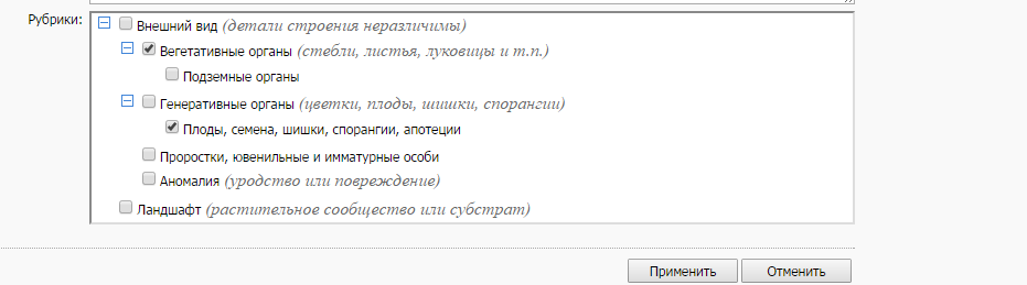 | Lena Glazunova | Евгений, обратите внимание, что появились новые рубрики. Не просто "Вегетативные" или "Генеративные органы", можно уточнить, если на картинке органы подземные или плоды/семена/спорангии и т.д. |