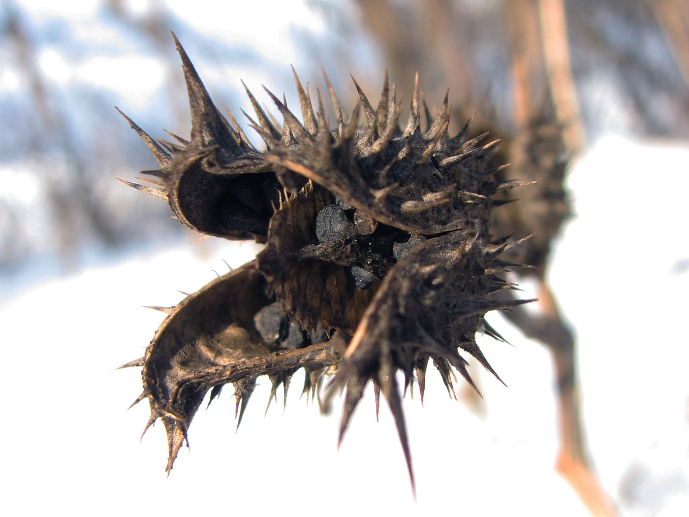 Вскрывшийся сухой плод-коробочка. Украина, Житомирская обл., Новоград-Волынский, правый берег р. Случь в р-не Житомирского моста. 17.01.2017.