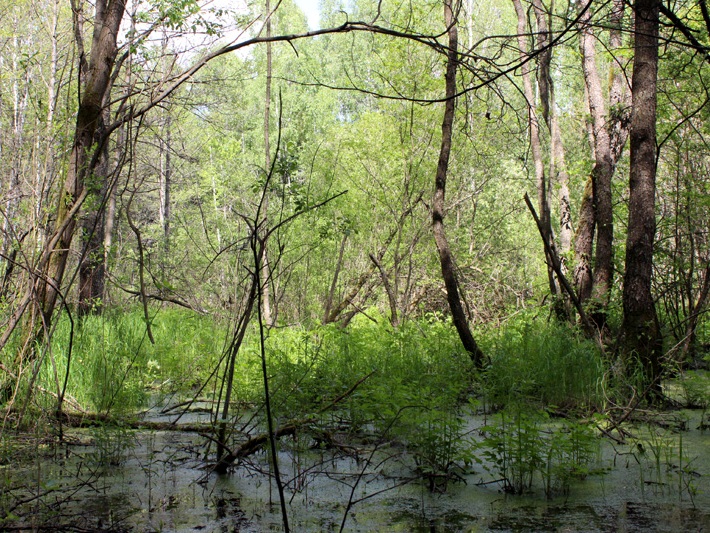 Вы сомневались насчёт влажности места? Это место в низинке, лес выше. А до него через дорогу, метрах в 200 было довольно влажно, сделано такое фото: