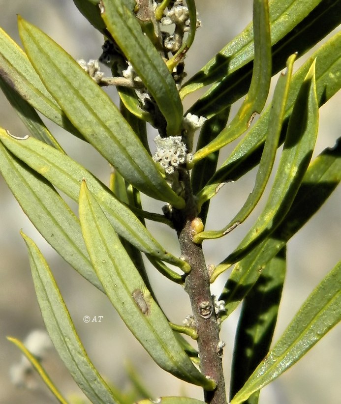 Верхушка побега с остатками прошлогодних соцветий. Испания, Центральная Кордильера, нац. парк Сьерра-де-Гуадаррама, гранитный массив La Pedriza, ок. 1150 м н.у.м. Январь.