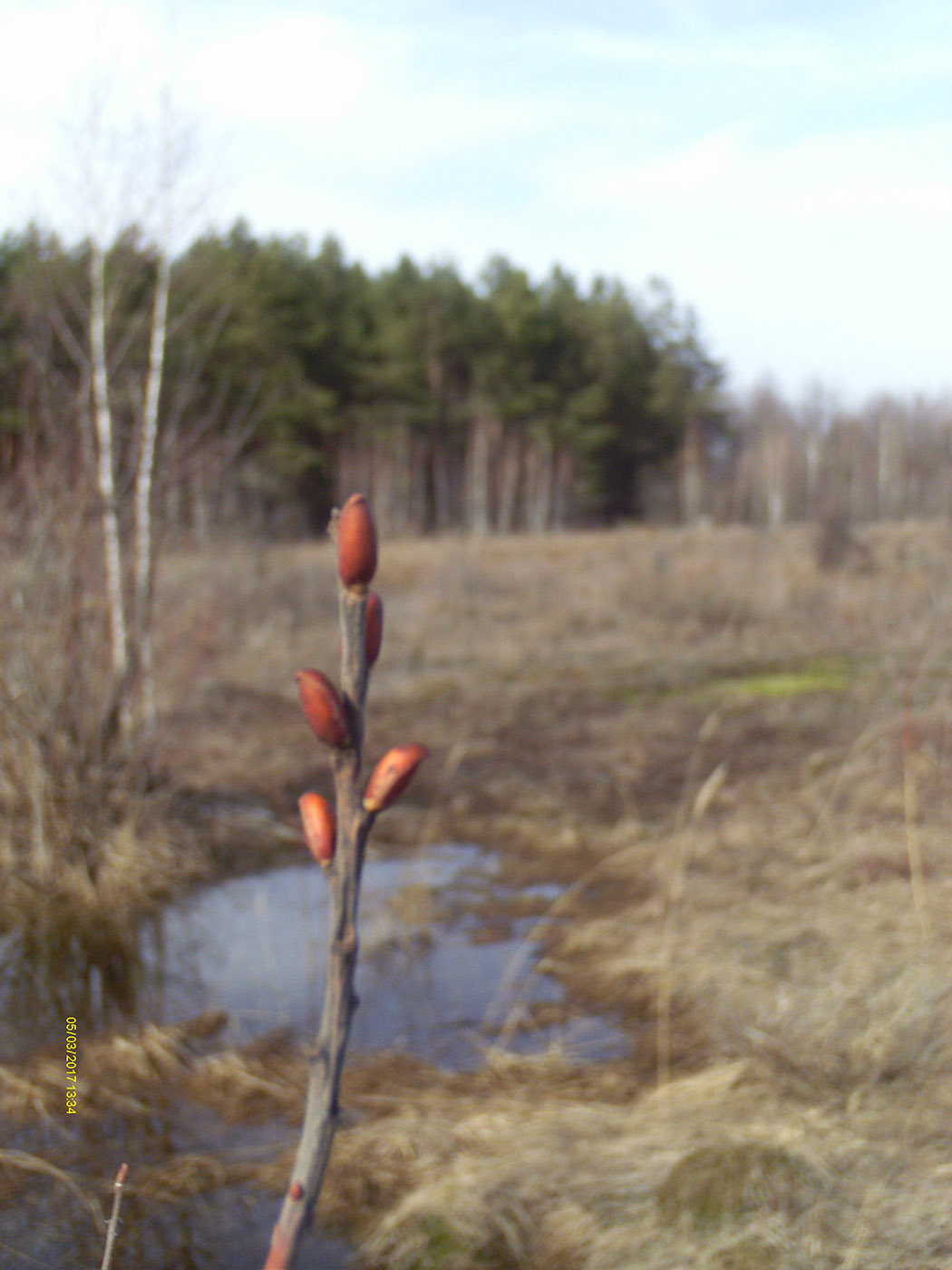 Побег с распускающимися соцветиями. Украина, Житомирская обл., Новоград-Волынский р-н, луг. 05.03.2017.