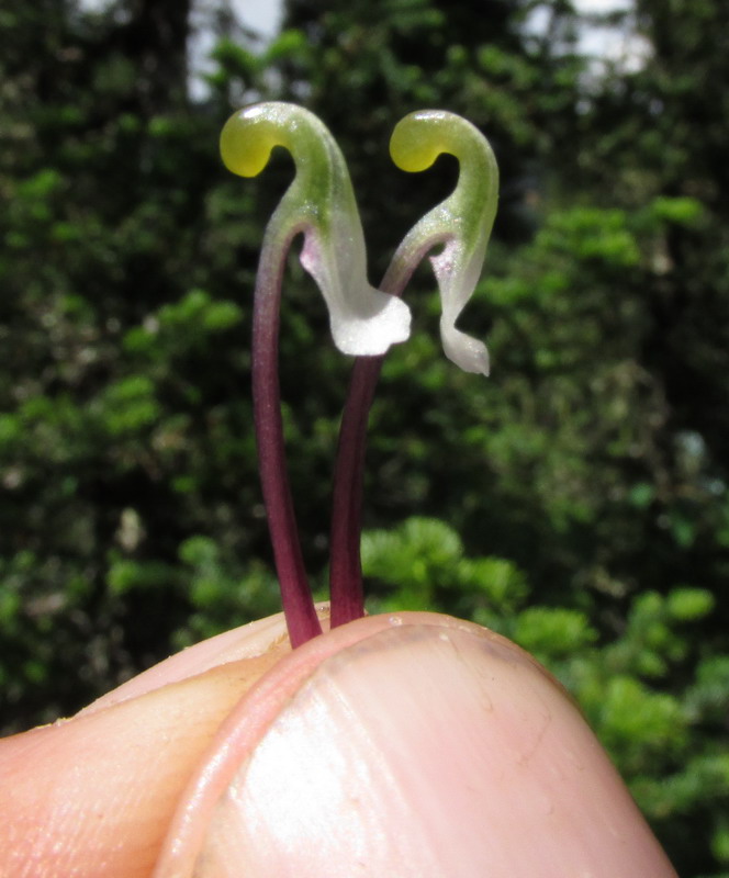 Кроме характера соцветия и длины цветоножек, что невозможно оценить на представленном фото, т.к. верхушки соцветия и старые соцветия по этому признаку не отличимы, отличаются и по форме шлема. Тут этот признак виден хорошо. У septentrionale высота шлема превышает диаметр суженной части в 3-5 раз, диаметр шлема примерно одинаковый по всей высоте, также высота шлема заметно и сильно превышает его ширину на уровне носика. Как раз случай обсуждаемого фото. А вот как выглядит шлем у leucostomum - особенно посмотрите на нижние развитые цветки. |