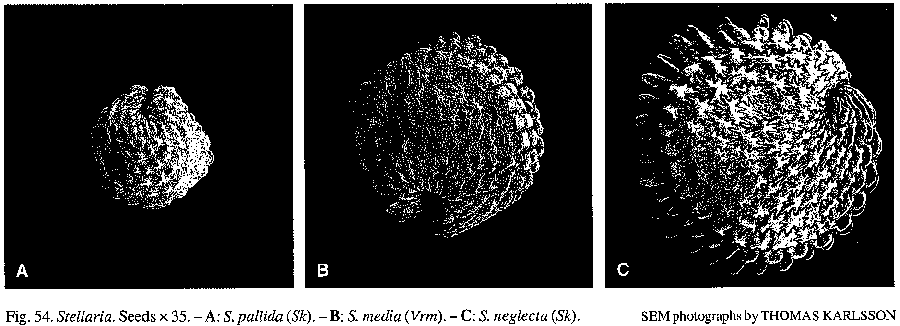 Как-то так: Семена 1,3 - 1,7 мм в диаметре, темно-красновато-коричневые, с 4 рядами высоких остроконечных сосочков - S. neglecta Семена 0,8 - 1,3 мм в диаметре, темно-красновато-коричневые, с широкими тупыми сосочками - S. media Семена 0,5 - 0,8 мм в диаметре, желтовато-коричневые, с широкими тупыми сосочками - S. pallida Масса 100 семян у S. neglecta 75 - 80 мг, у S. media - 35 - 40 мг, у S. pallida - 12 - 15 мг.