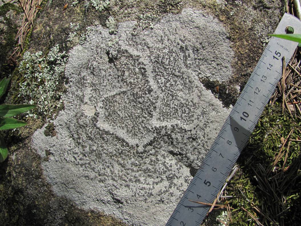 Часть таллома с апотециями. Краснодарский край, Абинский р-н, окр. пос. Новый, скалы Новые, выход скальных пород. 03.05.2017.