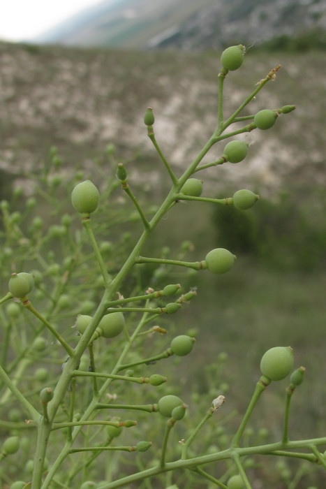 В очерке по этому виду в КК РК помимо фотографии Павла есть еще фото зрелых плодов, видимо, сделанное автором очерка О.А. Михайловой, на котором явно видно, что плоды не шаровидные, тупые и гладкие, как должны быть у C. pinnatifida, а четырехгранные, заостренные и сетчато-жилковатые или морщинистые. Поэтому это, скорее всего, либо загадочная C. grandiflora, либо что-то из родства C. orientalis.В Красной книге РК там стоит единственная точка для C. pinnatifida. При этом Оля Михайлова, которая составляла очерки по катранам, говорила мне, что была там лично и подтвердила определение. Если хотите, можно связаться с ней и уточнить. |