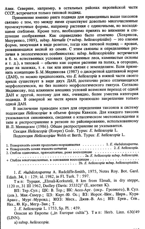 | Vladislav Grigorenko | Разнообразные рассуждения о helioscopioides (в нашей базе - отдельный вид) содержатся в статье Гельтмана "Заметки о кавказских видах рода Euphorbia" (НСВР, т.28, 1991); в бывш. СССР - на Кавказе, в Крыму и Причерноморье;