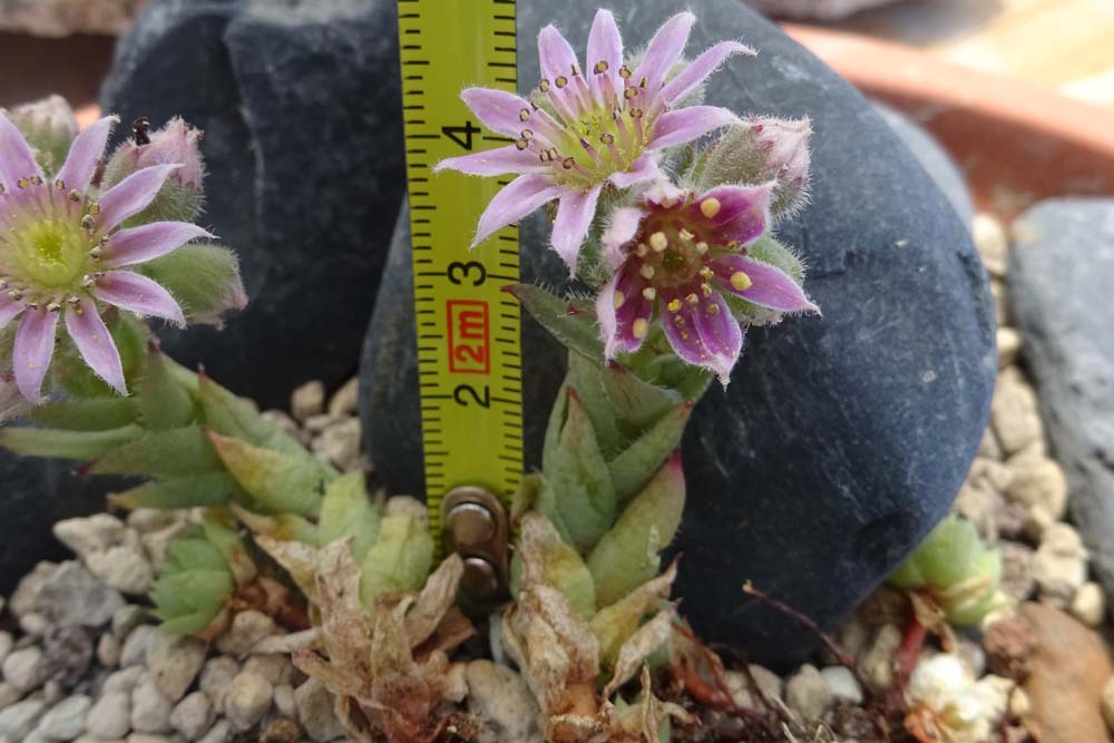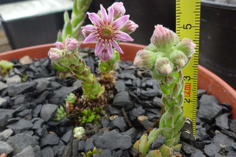 Цветущий побег (6 см выс.) (Sempervivum borissovae Wale). Северный Кавказ, окр. пос. Верхняя Балкария, в культуре (в природе — на вертикальной скале на моховой подушке). 17.07.2017.
