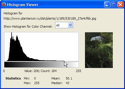 | Игорь Павлов | Дмитрий я вас не понимаю! Хуже что? Гистограмма ушла в центр. Левый край гистограммы за фоном, центр за соцветием. Но чем больше будем давать темный фон (а он объективно темный по отношению к соцветию, потому что в тени и т.д.), гистограмма будет уползать влево. У меня задача не «высветлить» фон, а сделать «читаемым» соцветие, что бы оно не превратилось в белое пятно. |