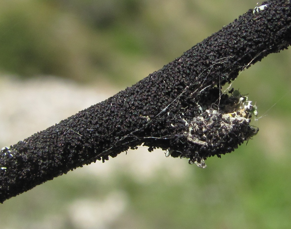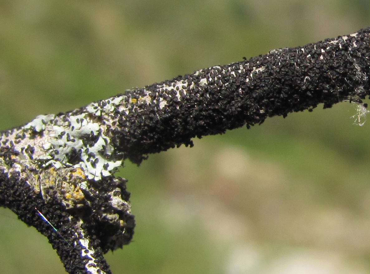 Часть отмершего побега с лишайниками. Кабардино-Балкария, Эльбрусский р-н, окр. пос. Эльбрус, ок. 1750 м н.у.м., каменистое место. 22.08.2017.