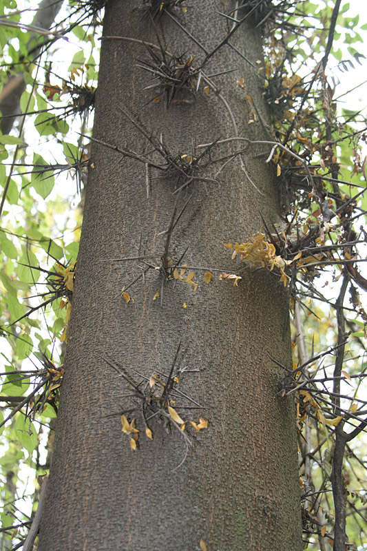 | Andriy Kovalchuk | В принципе, если это гибрид, то наличие шипов, вероятно, может варьировать. В Википедии под этим названием лежат ну очень колючие деревья - правда, из Франции, а не из Техаса. Но у Саржента чётко сказано, что от G. triacanthos этот вид отличается отсутствием шипов... |