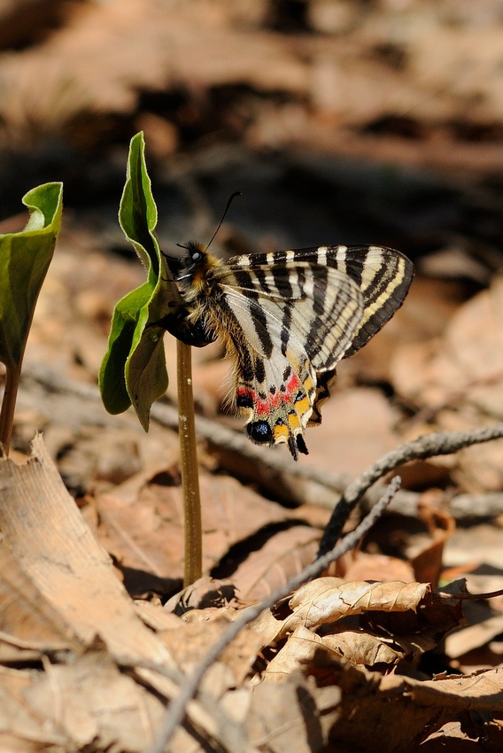| Дмитрий Мезенин | Luehdorfia puziloi за откладкой яиц на кормовом растении Asarum sieboldii. Чернопихтово-широколиственный лес. Приморский край, г. Владивосток. 22.04.2017.