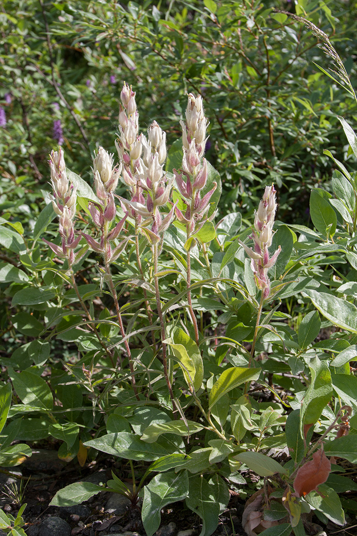 Отцветающие растения среди побегов Salix. Мурманская обл., Кольский р-н, автодорога Туманный — Дальние Зеленцы, обочина дороги среди ивово-берёзового мелколесья. 24.07.2016.