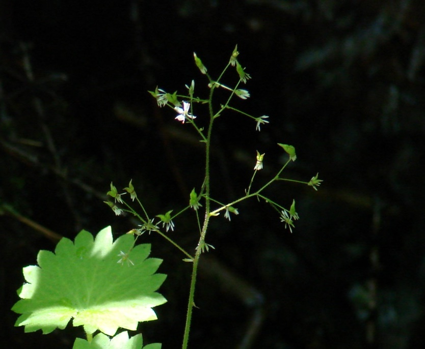 Листья и отцветающее соцветие с завязавшимися плодами. Иркутская обл., Иркутский р-н, окр. Сухого озера, лиственично-сосново-кустарниково-бадановый лес, берег лесного ручья. 05.07.2017.