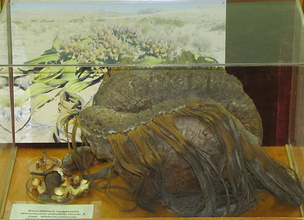 Ещё когда я был старшеклассником, на занятиях в МАлой академии наук профессор Сергей Александрович Волгин восхищённо рассказывал о виденной им в Берлинском ботаническом саду вельвичии и показывал отснятые там слайды. Слушая его, я и представить не мог, что менее чем через 10 лет я тоже попаду в Берлинский ботсад и смогу воочию взгялнуть на это удивительное растение. Оно растёт там в отдельной застеклённой витрине - то ли из-за особых требований к микроклимату, то ли для защиты от любителей оторвать кусочек на память.