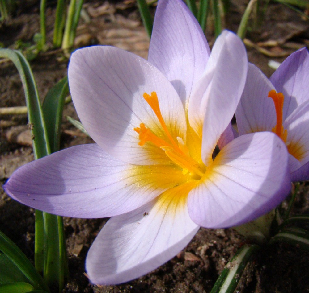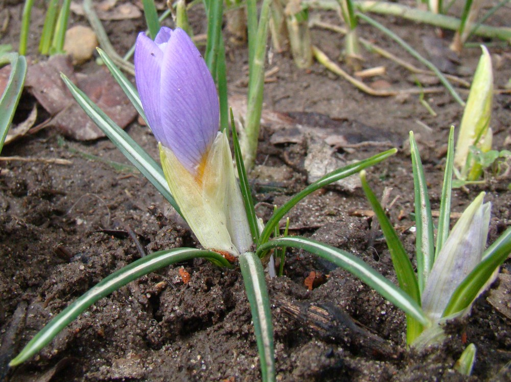 Цветущие растения (сорт 'Firefly') с фуражирующей пчелой. Краснодарский край, г. Усть-Лабинск, на приусадебном участке. 04.03.2018.