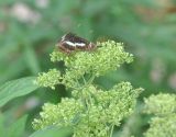 Верхушка побега с соплодием и бабочкой рода Athyma (A. jina или A. selenophora). Южный Китай, провинция Хунань, парк Zhangjiajie National Forest Park, заросшая кустарником и травой долина ручья. 6 октября 2017 г.