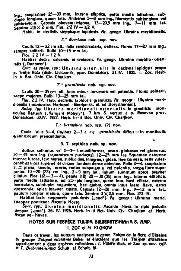 Зоз І.Г., Клоков М.В. Нотатки про українську Tulipa biebersteiniana s. amp. / Труди Н.-Д. Інтситуту ботаніки / Т. 1. - 1935. - С. 61-74. |