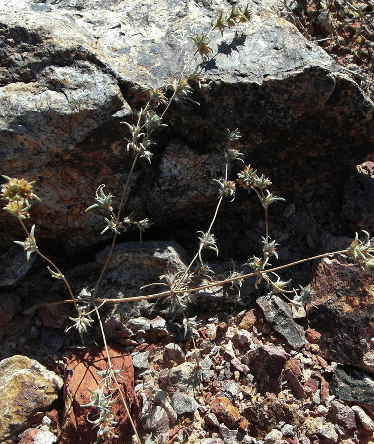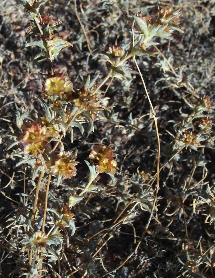 Плодоносящие растения, стелющиеся вдоль склона сопки. Казахстан, Карагандинская обл., Актогайский р-н, юго-восточнее пос. Моинты, юго-западный склон сопки с глыбово-щебнистой осыпью. 24.09.2018.