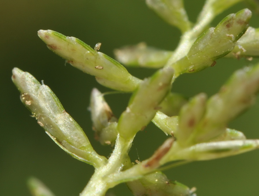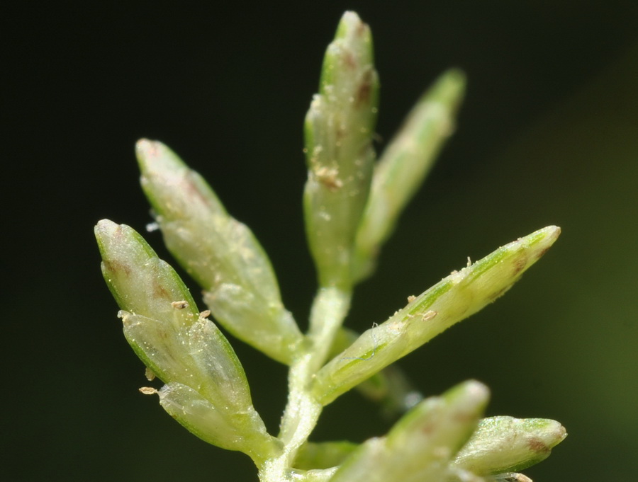 Соплодие с проползающим клопом. Приморский край, Шкотовский р-н, окр. с. Новонежино, зарастающая тропинка на краю переувлажненного луга. 02.08.2018.