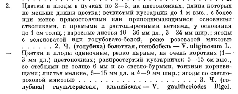 | Lena Glazunova | Ну мне кажется, что это та же самая обычная голубика, просто выросшая в более суровых условиях, потому и мельче всё. Если взять определитель и попытаться честно определить, следуя всем этим размерам в ключах, получится, что оно никуда не лезет. В смысле, числа в ключах взяты с потолка.