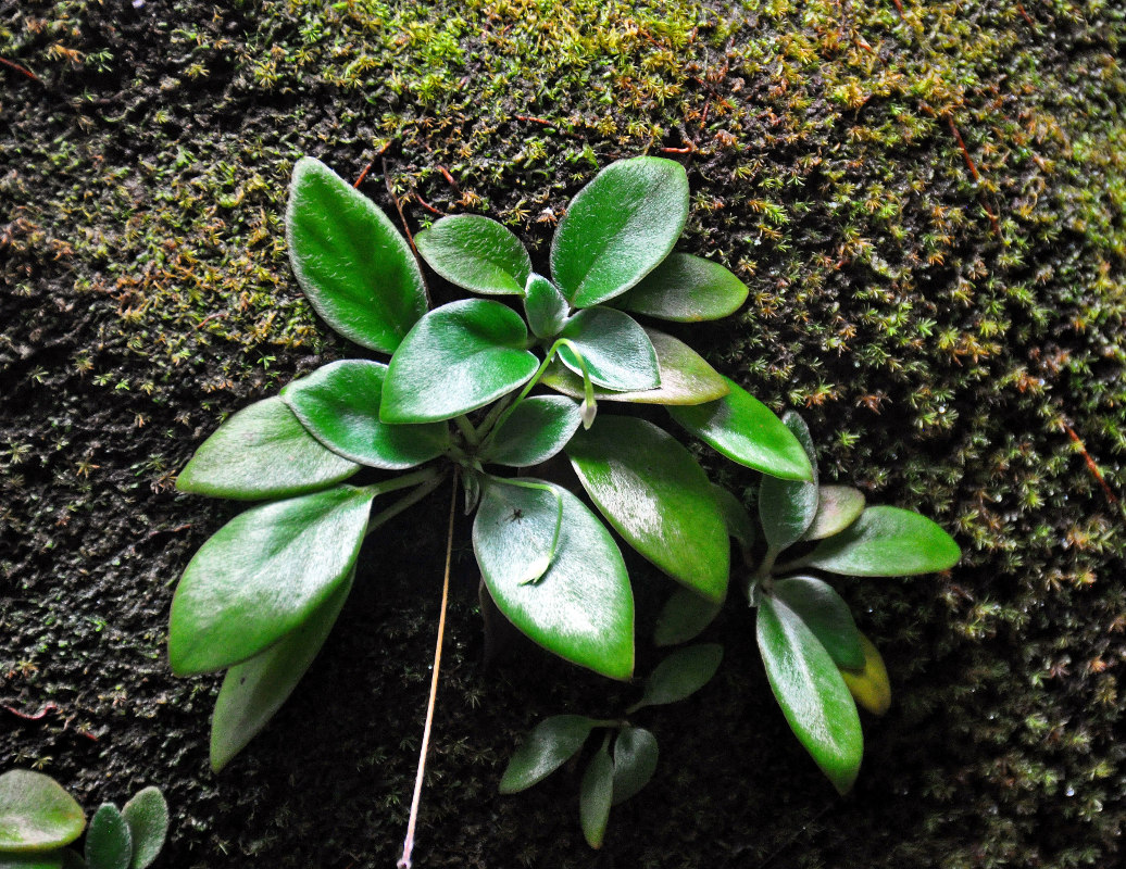 Расцветающее растение. Малайзия, штат Саравак, национальный парк Бако; о-в Калимантан, влажный тропический лес, на поросшем мхом валуне. 10.05.2017.