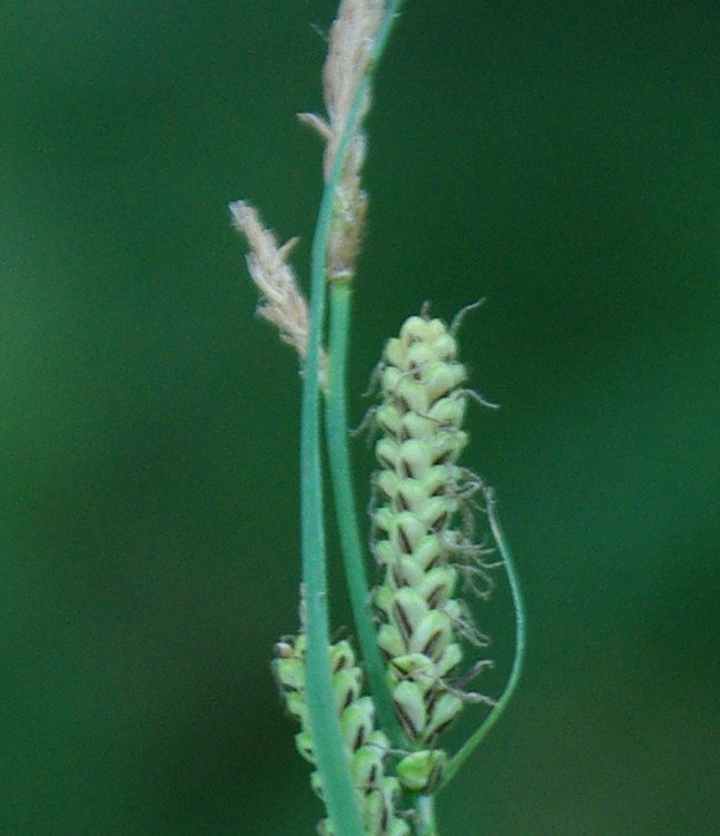| Lena Glazunova | Ээээ. Ну, такие округлые бледно-зелёные штуки, из которых торчат рыльца женских цветков. Они могут быть голыми, могут быть с пупырышками или с волосками. Носик у мешочков тут вроде бы тёмный. Рылец 3? А длина влагалища листа важна у самого нижнего колоска, больше 0,5 см или нет.