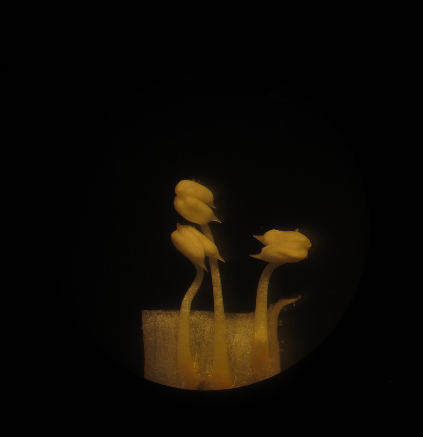 Тычинки под бинокуляром (ширина поля зрения — 1 мм). Крым, окр. Феодосии, Курортное, пустынно-степной склон (паразитирует на Artemisia taurica). 20 мая 2018 г.