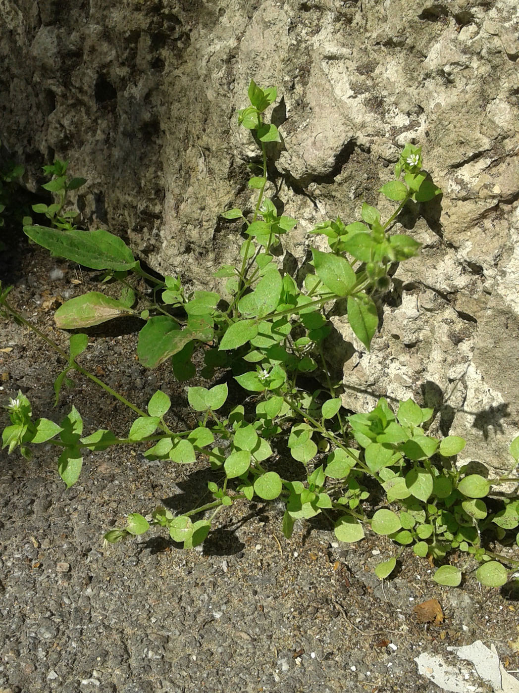 Цветущее растение. Санкт-Петербург, Московский р-н, окр. пересечения Бассейной ул. и Варшавской ул., в трещине между жилым домом и тротуаром. 07.06.2019.