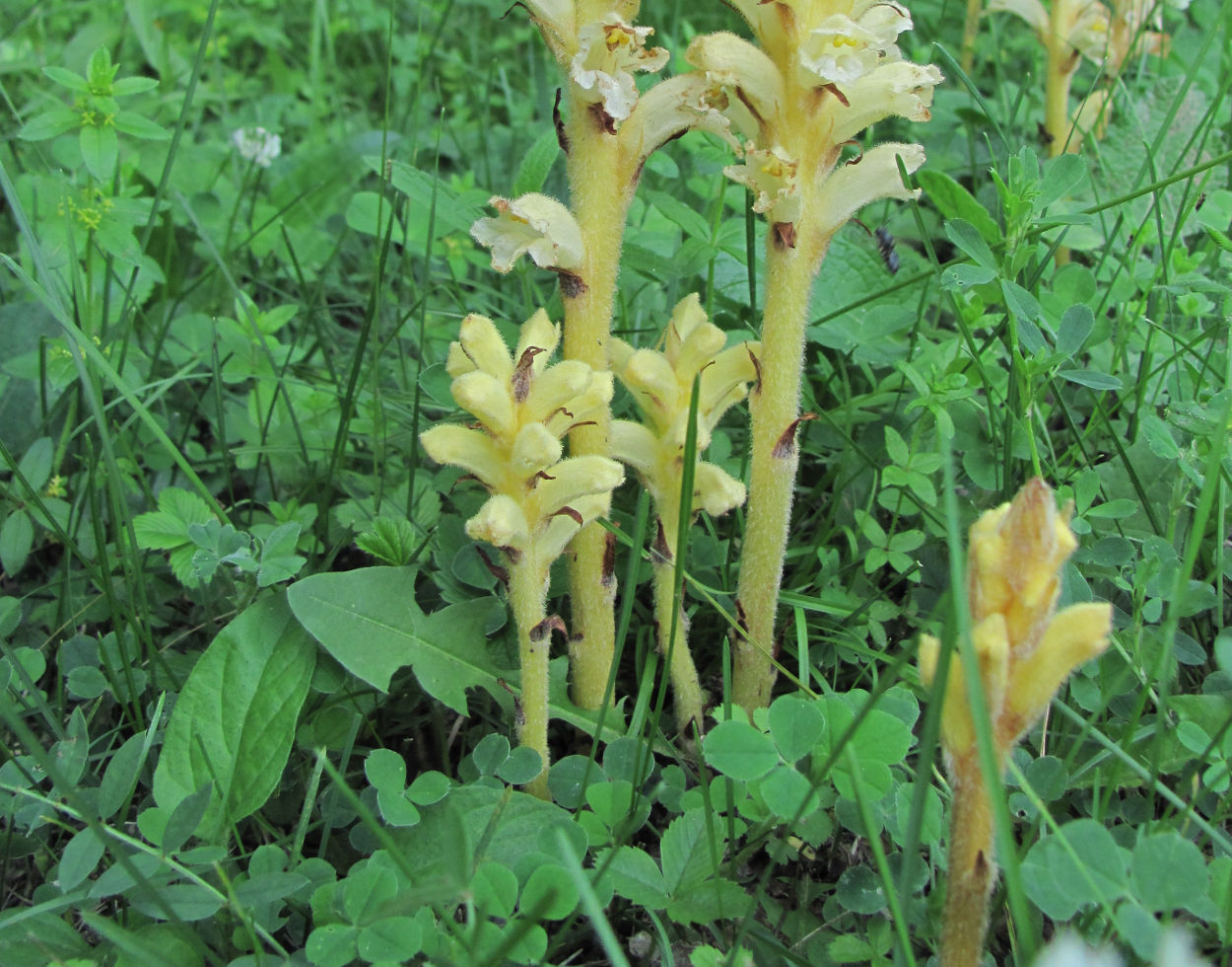 | Alexander Fateryga | Тут мне подсказывают, что это не Orobanche alba subsp. xanthostigma, а возможно O. cicerbitae или O. inulae или еще что-то. Нет ли еще кадров, где было бы видно потенциальных хозяев?