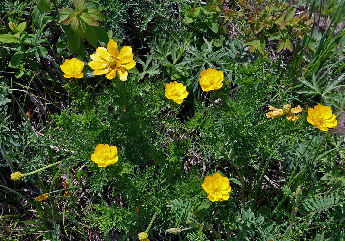 Цветущее и плодоносящее растение. Алтай, Улаганский р-н, окр. перевала Кату-Ярык, ≈ 1200 м н.у.м., луг на опушке хвойного леса. 20.06.2019.