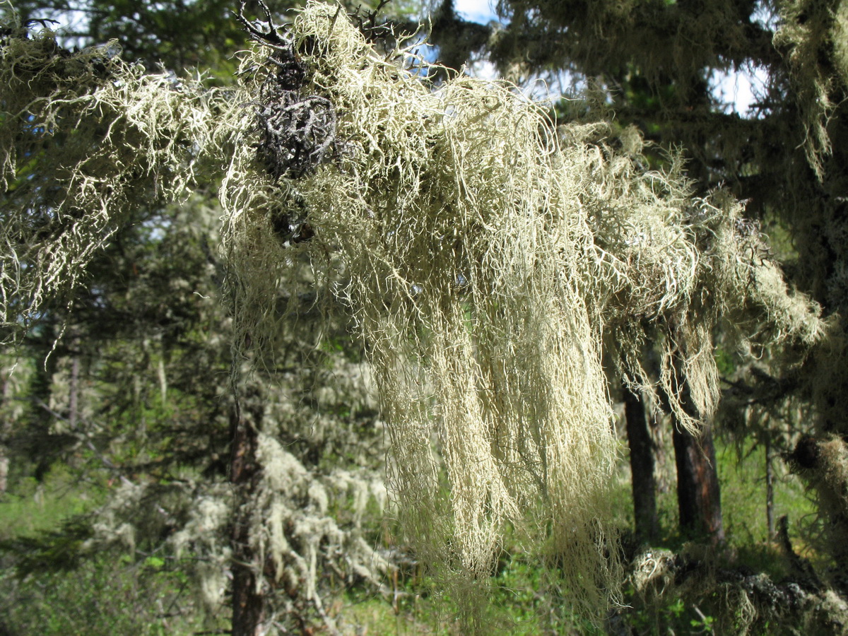 Талом на ветви Pinus sibirica. Казахстан, Центральный Алтай, левый берег оз. Рахмановское, 1760 м н.у.м., моховая темнохвойная тайга. 24 июня 2019 г.