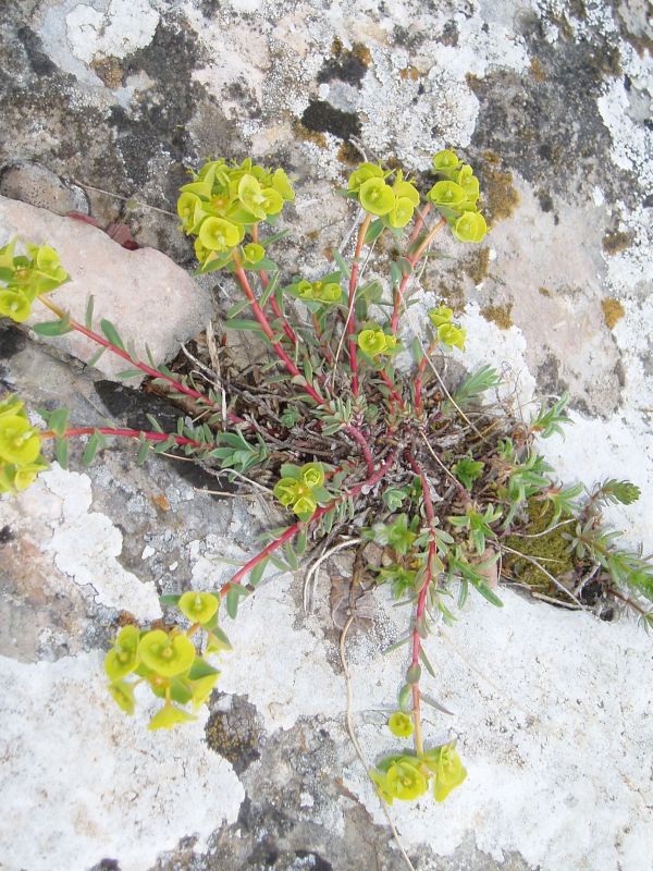 Цветущее растение в трещине скалы. Горный Крым, Долгоруковская яйла, 07.05.2010.