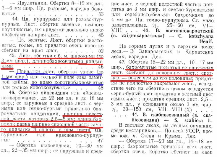 В украинском определителе несколько больше признаков и они лучше расписаны, чем в ФВЕ. Красным я отметил то, что, на мой взгляд, не подходит под Centaurea scabiosa. Синим - то, что подходит под C. pseudocoriacea. |