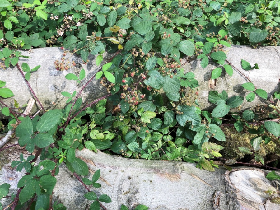 Ежевика на буковых бревнах. Германия, земля Рейнланд-Пфальц, окр. г. Hachenburg, буково-еловый лес. 04.08.2019.