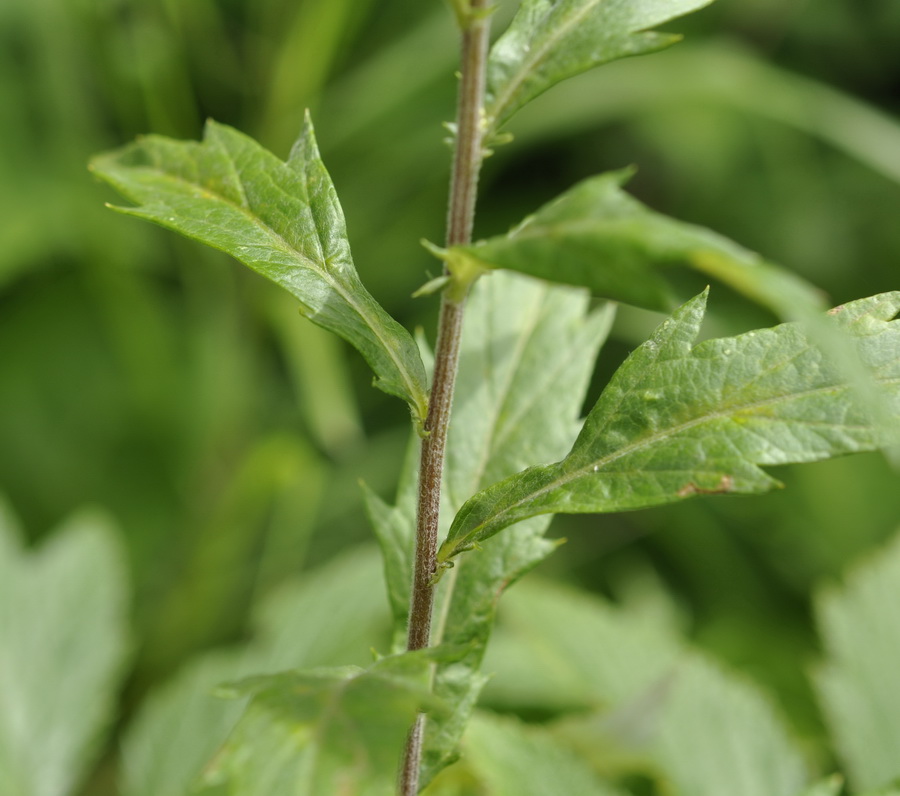 Часть побега с развивающимися пазушными соцветиями и сидящей цикадкой. Приморский край, Шкотовский р-н, окр. с. Новонежино, сырой разнотравный луг. 30.07.2019.