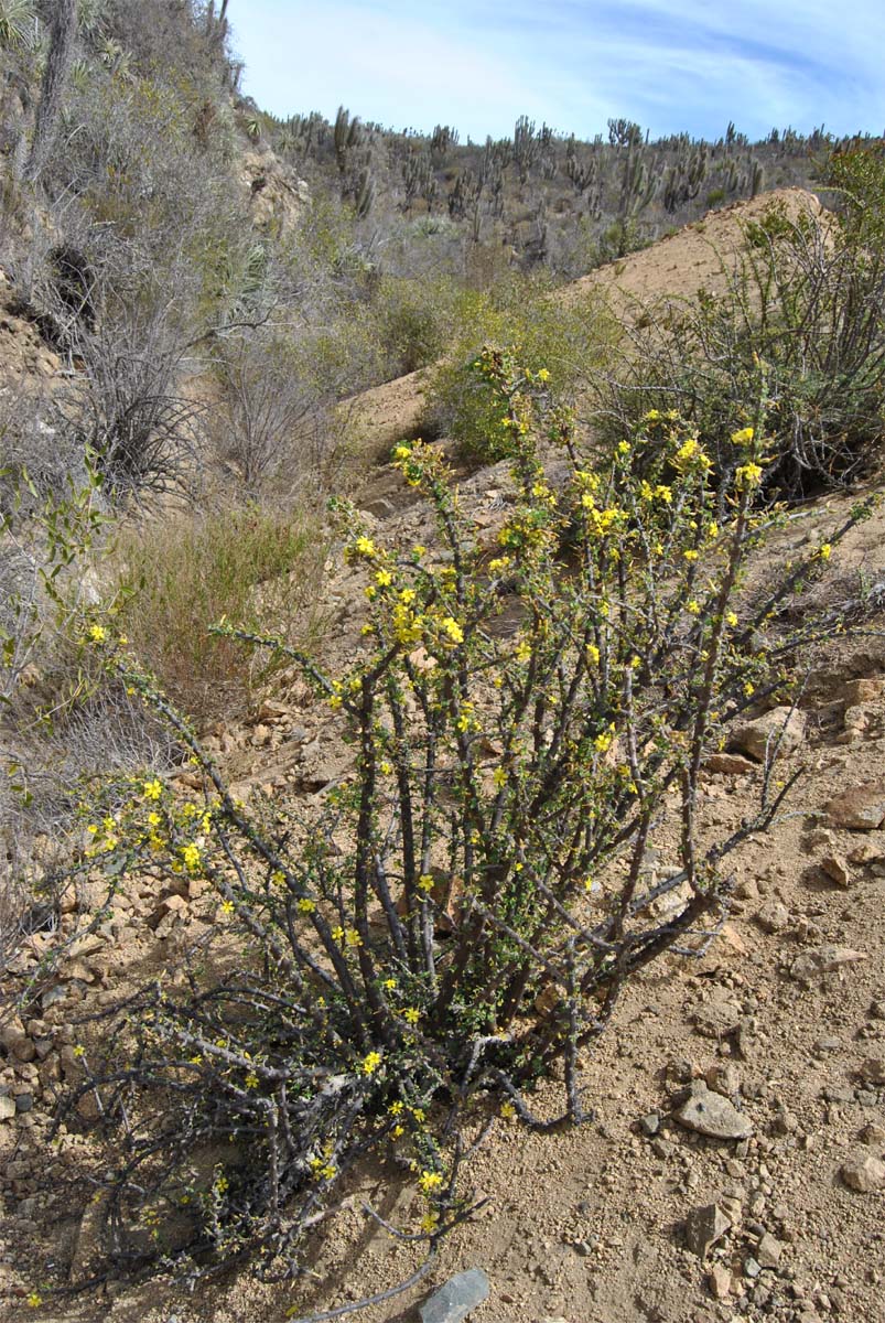 Цветущее олиственное растение. Чили, Тихоокеанское побережье, регион Coquimbo, окр. г. Ла-Серена. 09.10.2019.