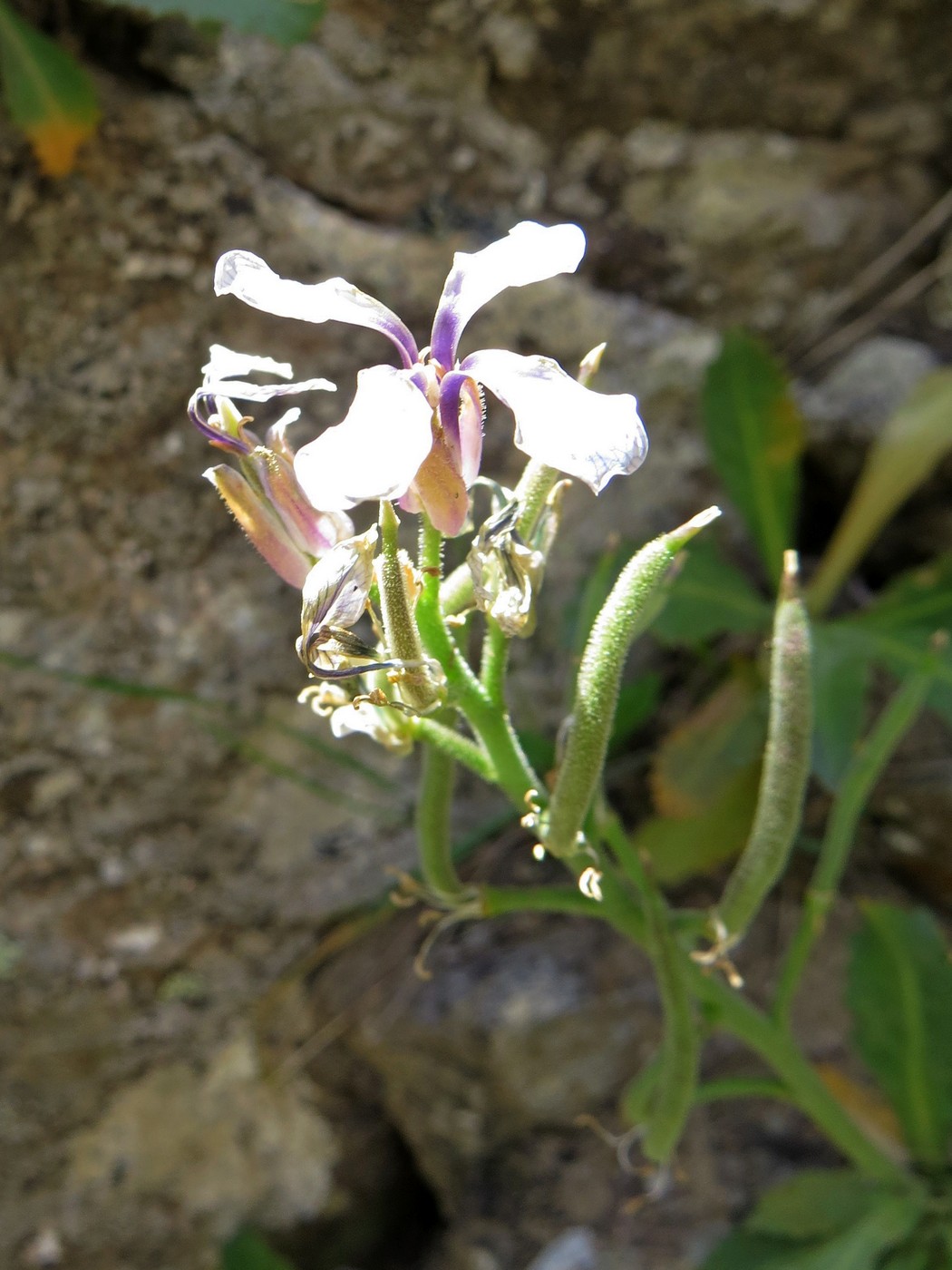 Плодоносящее растение в расщелине скалы. Таджикистан, р-н Сангвор; Памиро-Алай, Мазорский хребет, ≈ 2900 м. 18.06.2019.