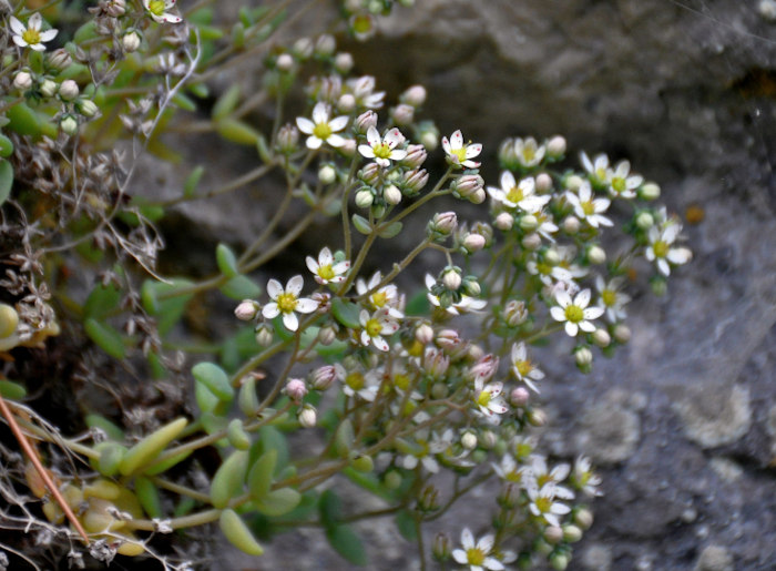 Цветущие растения. Сербия, национальный парк Тара, плоскогорье Равна Тара, западный берег оз. Заовине, на скале. 09.07.2019.