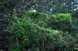 Цветущие растения на ветвях сосны. Сербия, национальный парк Тара, плоскогорье Равна Тара, западный берег оз. Заовине, опушка сосняка. 09.07.2019.