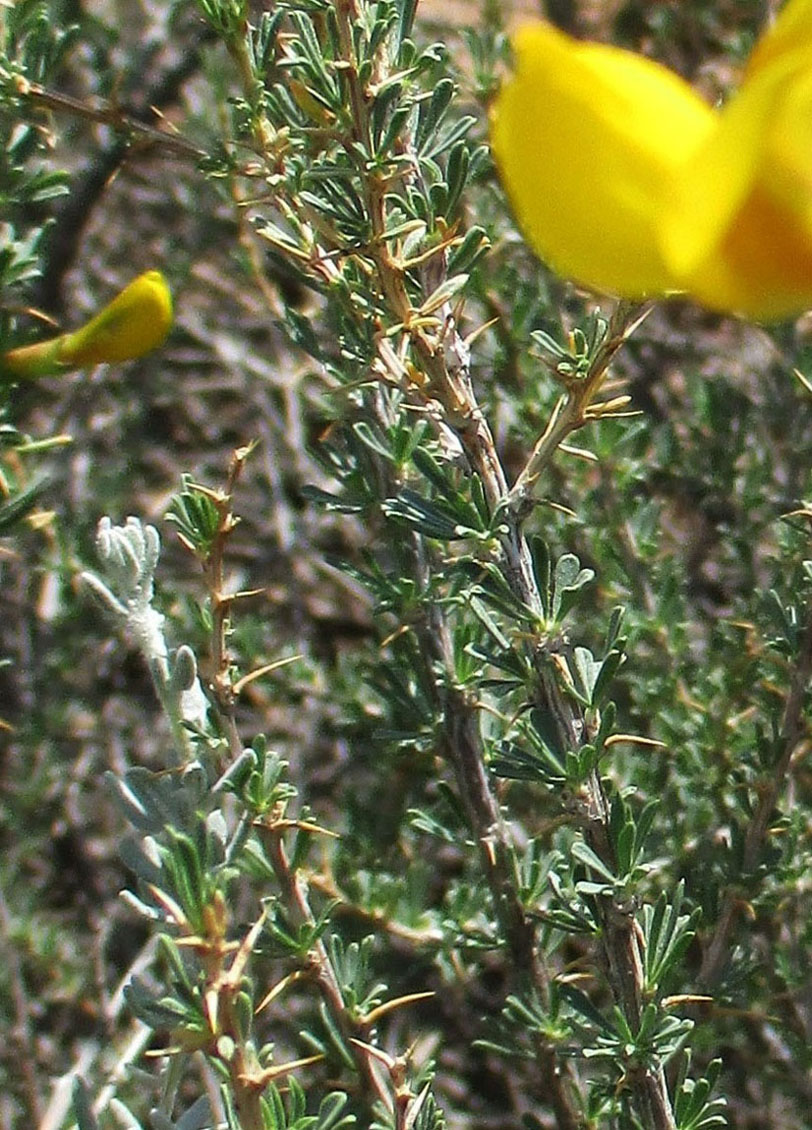 Верхняя часть побега с листьями и колючками. Казахстан, Карагандинская обл., Актогайский р-н, северо-западнее г. Балхаш, волнистая равнина с низкими каменистыми сопками и солонцами, граница ковыльной степи и такыра. 28.08.2017.