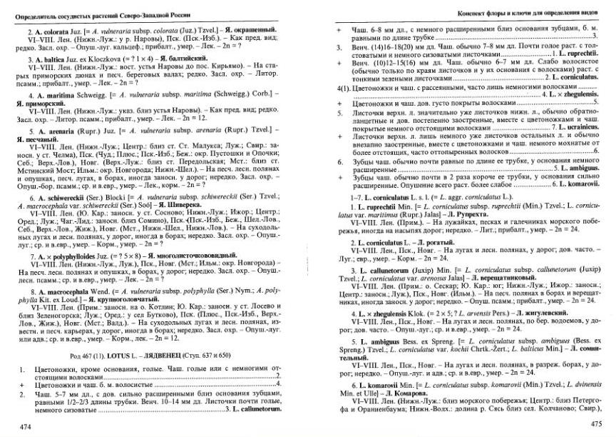 1) с б.м. волосистыми цветоножками и чашечками - Lotus komarovii Min. (=L. dvinensis Min. et Ulle - синоним, цит по: Н.Н. Цвелев Определитель сосудистых растений северо-западной России, 2000)