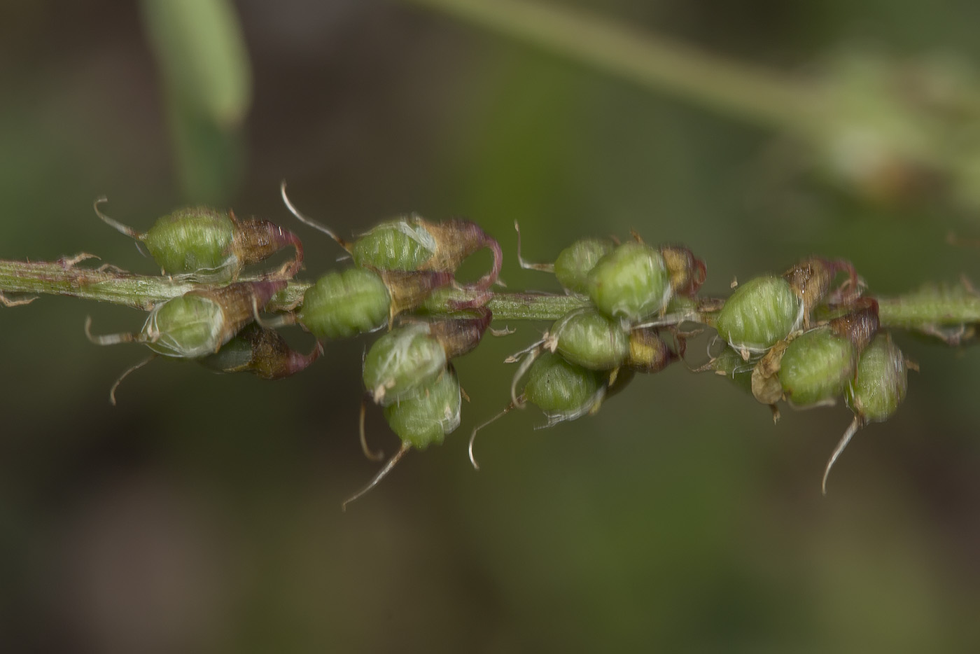 Соцветие со спящей улиткой и соплодие (слева). Крым, Бахчисарайский р-н, окр. пгт Куйбышево, пустырь. 27.06.2020.